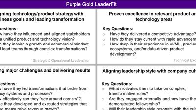 Unlike rigid frameworks, our ex-CIO/CTO-led LeaderFit assessment tailors a unique persona for each role, ensuring every search is distinct. We use four flexible dimensions to craft key questions and anchor candidate evaluations, delivering leaders who transform.